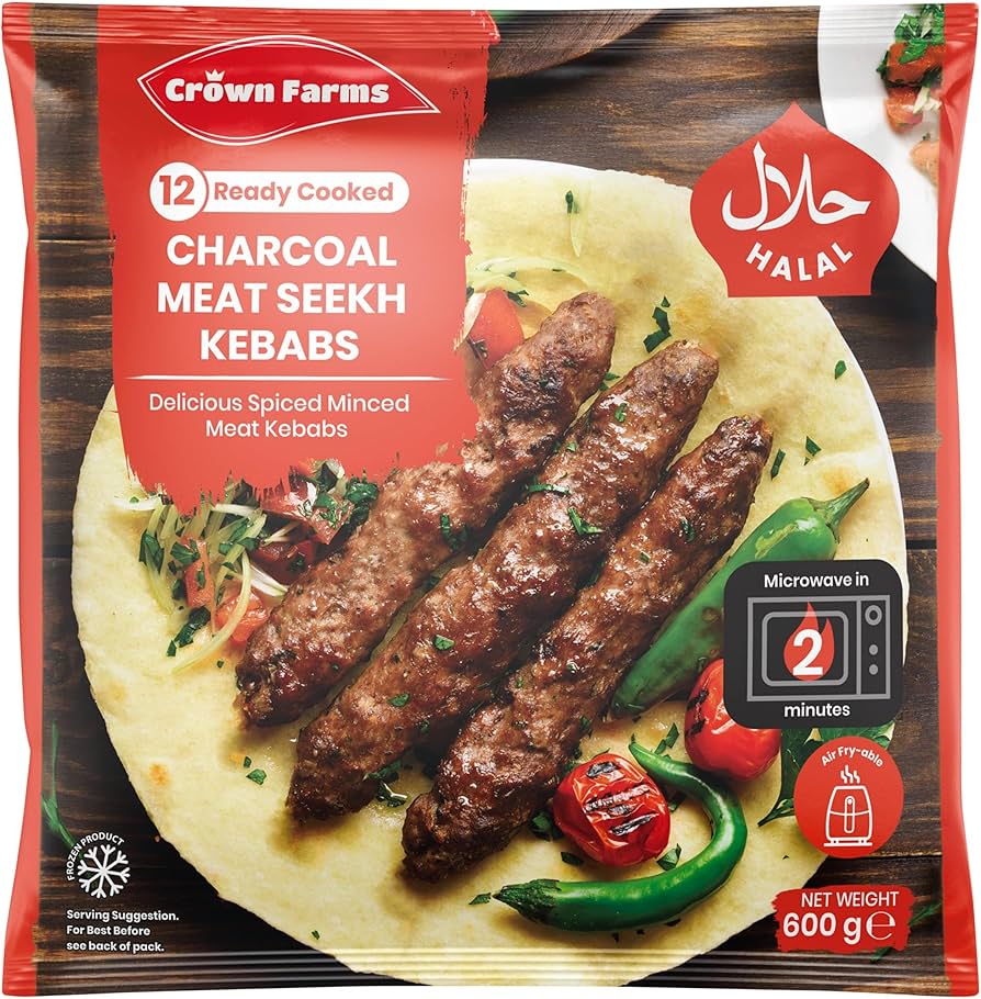 Crown Farms 12 Ready Cooked Charcoal Meat Seekh Kebabs 600g